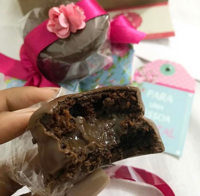 O que mais me chamou atenção foi a massa, bem aerada e fofinha, sem esquecer super aromática e recheio maravilhoso. Banhado com chocolate belga Callebaut e a caixinha super fofa ideal para presentear.