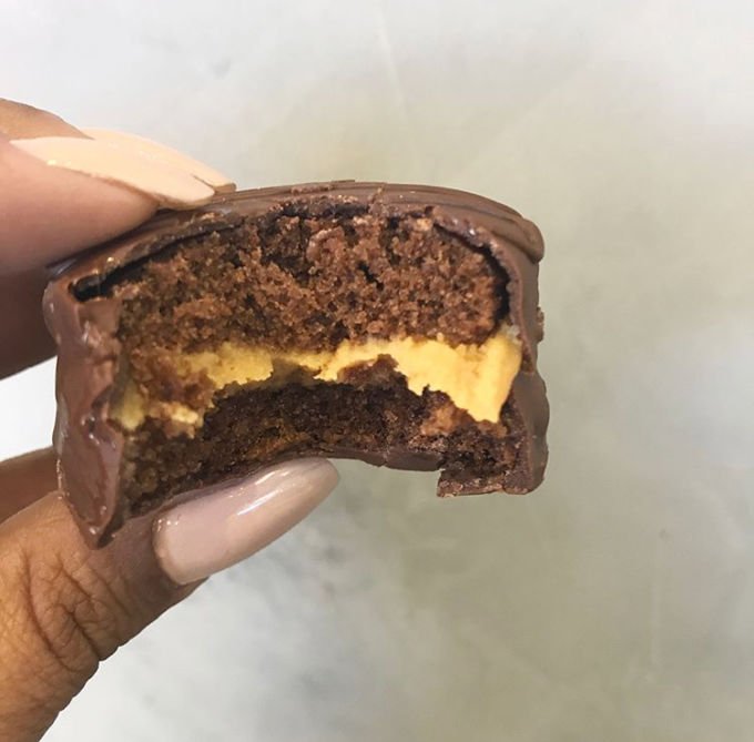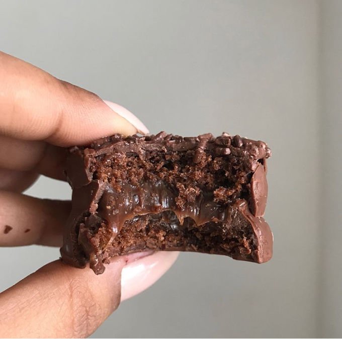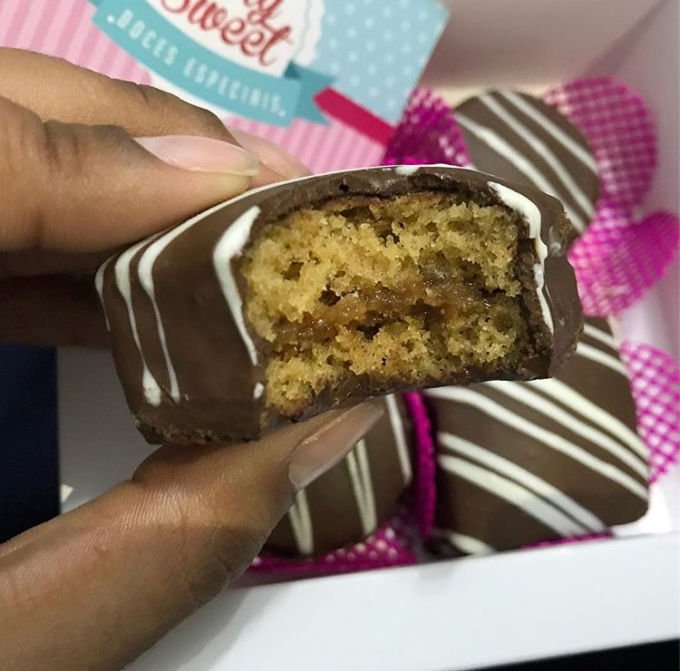 Muito aromático, e muito, mas muito fofinho - seguindo a linha dos tradicionais com recheio de doce de leite, mas pense numa delicia de sabor?! Equilíbrio perfeito da doçura. (e mais, a Amanda, responsável pelos quitutes da marca, ainda faz na versão Cake, ideal para cantar parabéns!)